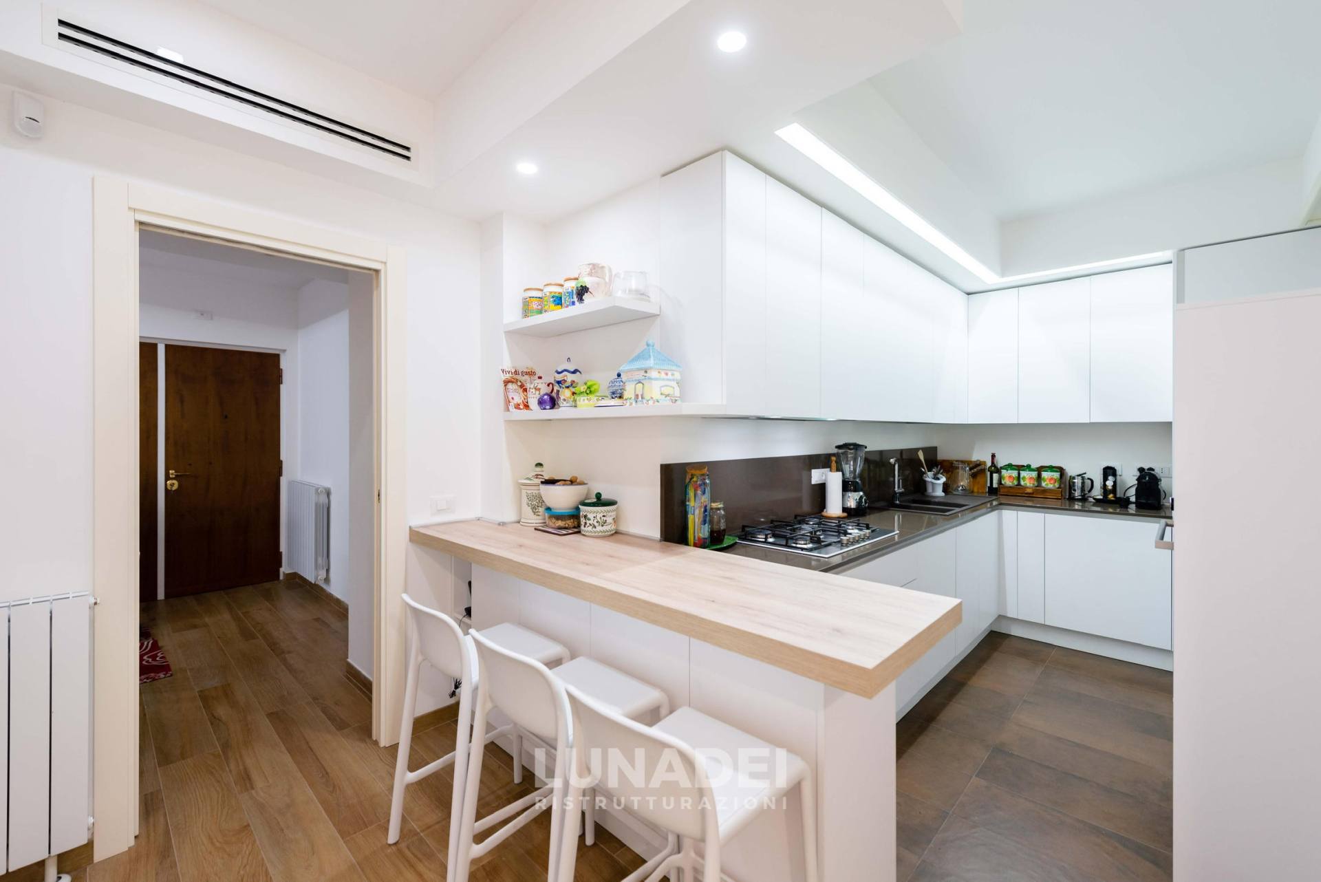 Nel verde e raffinato quartiere di Via del Casaletto, un appartamento di 140 mq ha trovato una nuova identità grazie a una ristrutturazione che ha saputo coniugare eleganza e funzionalità. Il progetto di Lunadei Ristrutturazioni ha ridefinito gli spazi con un perfetto equilibrio tra elementi classici e contemporanei, dando vita a “Armonia”, una casa che unisce raffinatezza e comfort in ogni dettaglio.