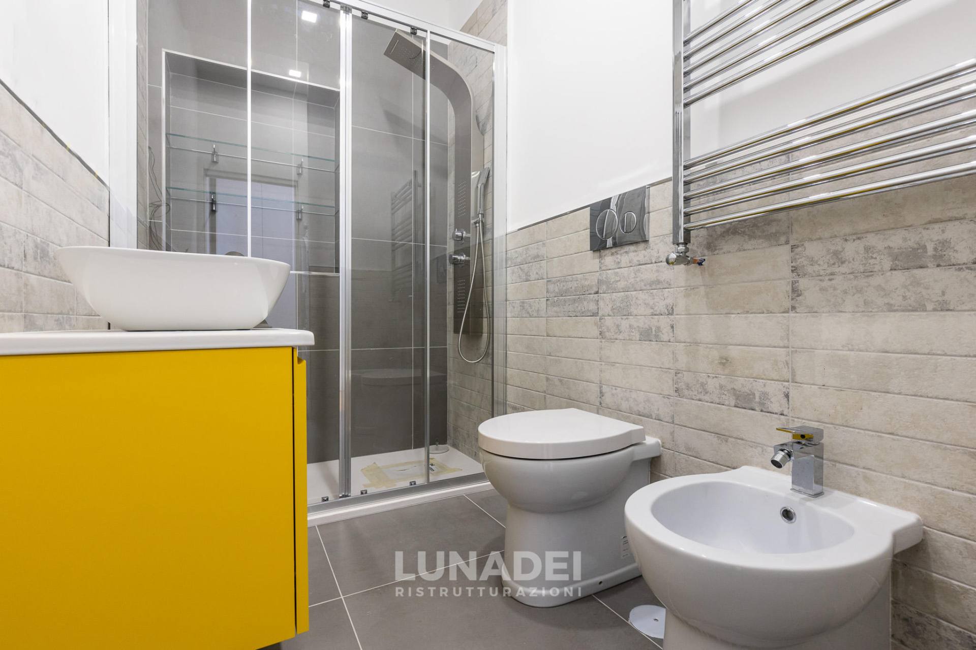 Gli impianti elettrico e idraulico sono stati riprogettati integralmente, garantendo maggiore efficienza e sicurezza. Il bagno è stato rinnovato con materiali moderni e linee pulite, in armonia con il resto dell’abitazione.