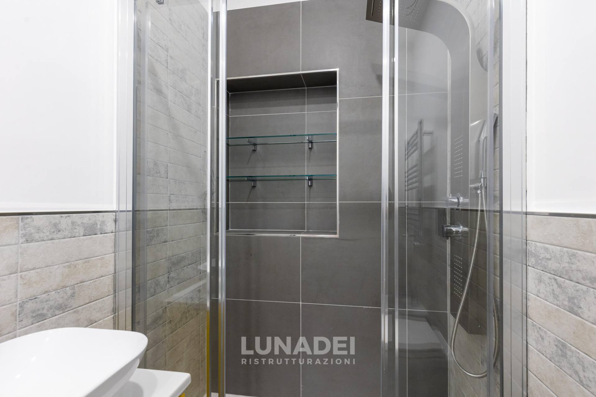 Gli impianti elettrico e idraulico sono stati riprogettati integralmente, garantendo maggiore efficienza e sicurezza. Il bagno è stato rinnovato con materiali moderni e linee pulite, in armonia con il resto dell’abitazione.